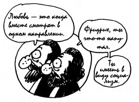 В 1842 году в Кельне молодой доктор Маркс пересекся с еще более юным сотрудником «Рейнской газеты», который был на три года его младше и направлялся в Манчестер. Пока студент Маркс пил и дрался в Берлине, буйный, «вечно смеющийся» Энгельс умирал со скуки в Бремене на семейном предприятии, занимающимся импортом и экспортом, где он должен был учиться искусству коммерции. Энгельс-отец, энергичный предприниматель, придерживающийся строгих религиозных убеждений, основал в Манчестере, мировой столице текстиля, прядильную фабрику «Эрмен и Энгельс», совладельцем которой он был. Энгельс-сын, которому суждено было стать наследником, не имеет никакой склонности к такому занятию. Он предпочитает сочинять экзотические поэмы об охоте на львов и свободной жизни бедуинов, бездельничать, лежа в гамаке, курить крепкие сигары, обходить таверны и изрисовывать целые страницы шаржами и карикатурами. Он может пить, не пьянея, занимается фехтованием и верховой ездой, отпускает вызывающего вида усы. Хвалится тем, что не «покупал права философствовать дипломом». Одно воззвание он адресует «всем молодым людям в том возрасте, когда можно начинать носить усы, желая сказать им, что пришла наконец пора навести страх на всех буржуа». Будучи «изысканным поэтом и избранным пьяницей», он заявляет всем «древним, настоящим, присутствующим и тем, кто придет», что они – всего лишь «гнилые твари, разлагающиеся в ничтожестве собственного существования». Он пробует даже завязать испанский роман, пишет письмо Лоле Монтес, но это ему быстро наскучило.