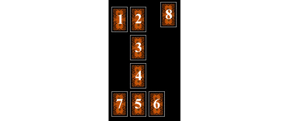 Этот расклад показывает развитие событий в ближайшие несколько дней (от недели до месяца) и используется как основа для принятия решения, когда жизненная ситуация достигла очередного «поворота». (Только Старшие Арканы).