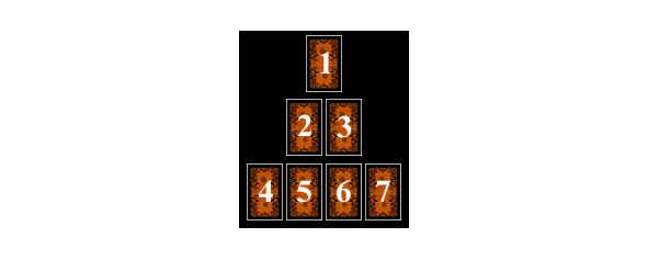 Смысл расклада: «встретить свою судьбу лицом к лицу», то есть осознать свою проблему, проанализировать обстоятельства, ей сопутствующие и найти выход. Из Старших Арканов выбирается карта для позиции 1, остальные выбираются из Младших.