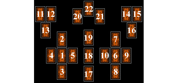 Этот расклад – прекрасный инструмент для изучения взаимоотношений. Он имеет симметричную структуру и хорошо раскрывает состояние двух сторон во взаимоотношениях.