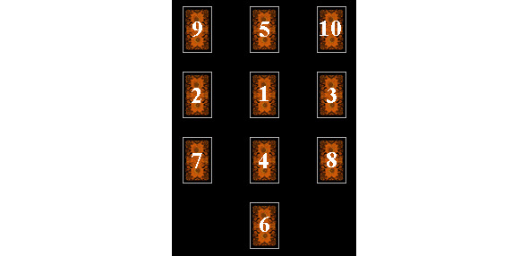 Расклад показывает вопрошающему истинное положение его дел. Обращенный в прошлое, он раскрывает перед ним тайны его собственной психологии, чтобы он познал, наконец, самого себя. Этот расклад показывает человеку его теперешний статус.