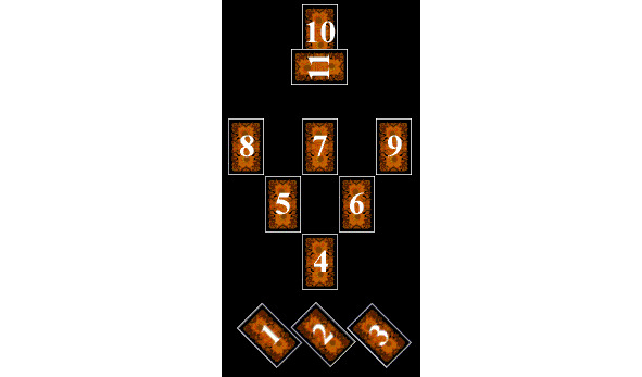 Этот расклад используется для исследования тайных влияний, для выявления обмана и изучения страхов.
