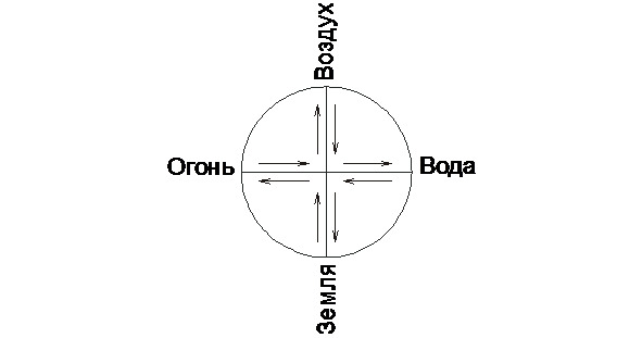 «огонь живет за счет смерти земли, воздух живет за счет смерти огня, вода живет за счет смерти воздуха, земля за счет смерти воды»21.