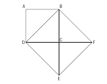 Мы видим, что исходный квадрат – ABCD – составлен из двух равных треугольников. Квадрат DBFE, построенный на диагонали исходного, составлен из четырех точно таких же треугольников. Поэтому он вдвое больше исходного.
