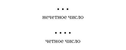 Четные числа делимы на две равные части. Нечетные числа неделимы надвое «из-за присутствия единицы в середине»[48].
