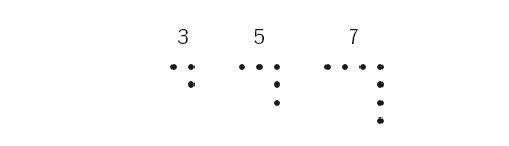 Пока что перед нами лишь собрание единиц, в котором мы не видим никакой особой структуры. Впрочем, можно сразу заметить, что перед нами число – нечетное, т. е. имеющее начало, середину и конец. Наше созерцание приобретает большую определенность. Мы уже выделили некоторую внутреннюю структуру.