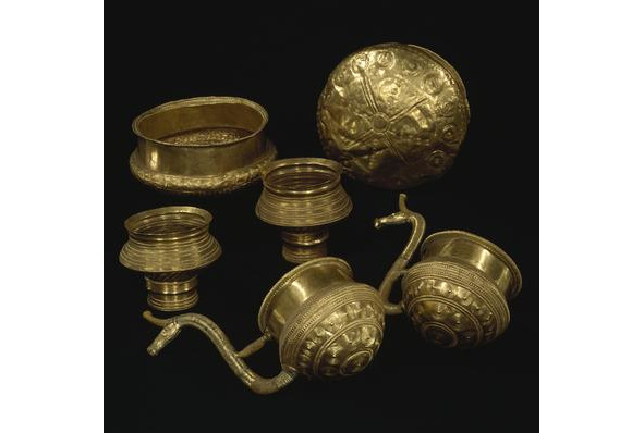 pic.21 Gold bowls from Denmark, late bronze age. a handle in the form of a horse’s head. The type of vessel is close to the findings in the Urals and the crystal cup from Mycenae. Remind small buckets from Russia, podezhivali on a large vessel by the handle.