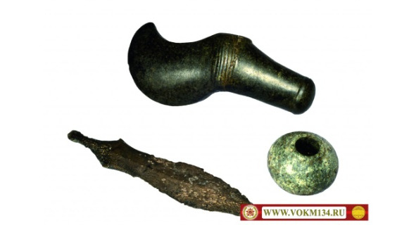 pic.21 A stone ax made of jade, found in the Volgograd region. The shape of the ax resembles the shape of the ax of the Borodino Treasure, the first from above. The Bronze Age. around the 15th century BC Volgograd Local History Museum.