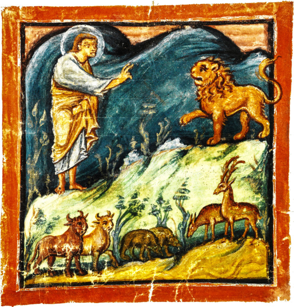 Мы начинаем говорить сперва о льве, царе всех <животных и> зверей. ¶ Иаков, благословлявший сына своего иуду, сказал: Молодой лев иуда. ¶ Физиолог, который писал о природе этих слов, сказал, что лев имеет три природы. ¶ Первая природа такова: ¶ Когда рыщет лев в горах, идя по чутью, и обнаруживает запах охотника, то хвостом заметает следы свои там, где ступал, чтобы не пошел охотник по следам его и не нашел логово его и не захватил его самого. ¶ Так и спаситель наш, духовный <побеждающий> лев от колена иудина, корень давидов, посланный отцом равновечным, сокрыл познаваемые следы свои, то есть божественность свою, от иудеев неверующих: с ангелами – ангел, с архангелами – архангел, с престолами – престол, с силами – сила; спускаясь до тех пор, пока не спустился в утробу девы, чтобы спасти погибший род человеческий. И слово стало плотию и обитало с нами. И те высшие, которые не ведали ни о схождении его, ни о вознесении, говорили: Кто сей царь славы? И ангелы, выводившие его, отвечали: Господь сил. Он – царь славы. ¶ Вторая природа льва такова: ¶ Когда он уже заснул, глаза его бодрствуют, ибо остаются открытыми. ¶ В песне песней возлюбленный подтверждает это, говоря: Я сплю, а сердце мое бодрствует. Воистину, телесно господь мой спал на кресте, но божественность его всегда одесную отца бодрствует. Не дремлет и не спит хранящий израиля. ¶ Третья его природа такова: ¶ Когда львица рождает детеныша своего, она рождает его мертвым. И львица оберегает его три дня, до тех пор, пока на третий день не придет отец его и, подышав на третий же день ему в лицо, не поднимет его. ¶ Так всемогущий отец лишь на третий день поднял рожденного прежде всякой твари из мертвых, <господа иисуса христа>. Поэтому хорошо сказал иаков: Иуда – молодой лев, кто поднял его?