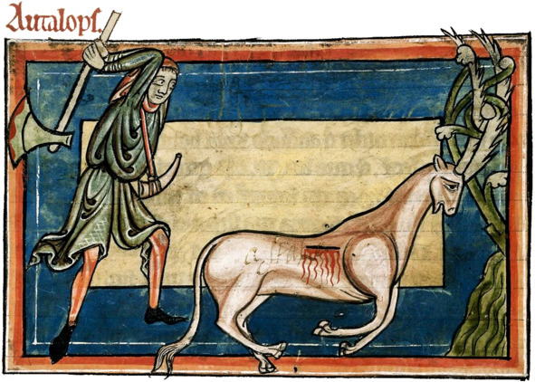 Об автолопе. Искажение от греч. antholops (лат. antilope). В разных латинских списках это слово написано по-разному – и неизменно ошибочно (в версии B: autolops, в версии C: antelups; также antula, autalops, autula). По всей видимости, переводчикам и переписчикам оно было совершенно незнакомо. В славянских переводах – гидропа.
