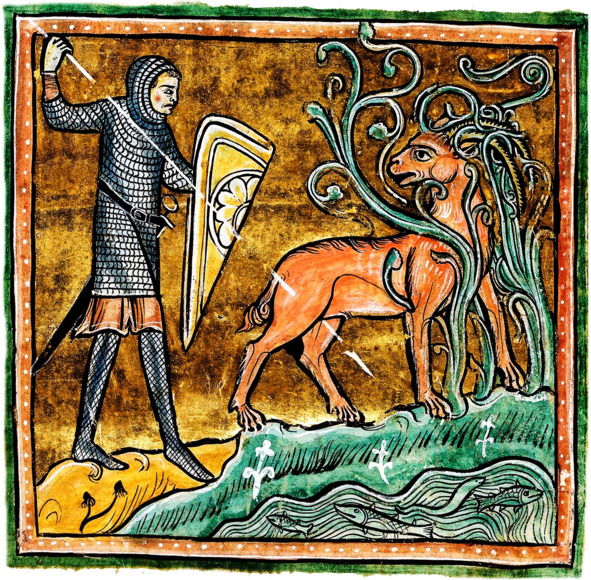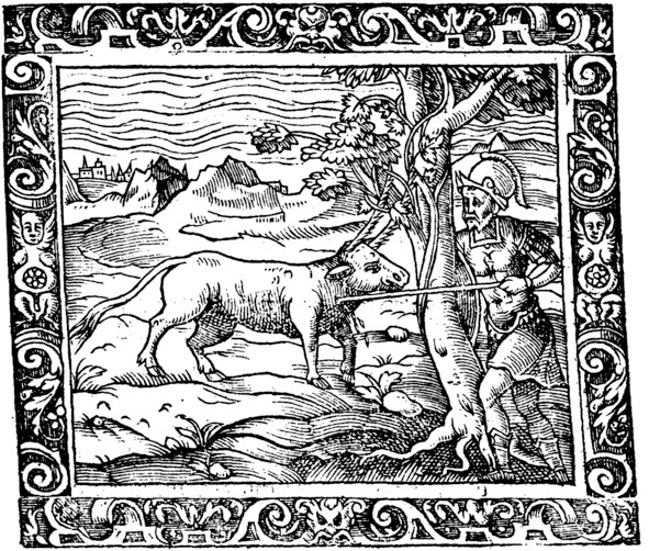 «Есть зверь один с острыми рогами, который обитает в зарослях […]. Высоко вздымаются острия его рогов, отливающих черным, и они прочнее отточенной бронзы или холодного железа или обломанного камня и, говорят, обладают ядовитой природой. Дух этого зверя тверд и несгибаем […], не боится он и людей – немало храбрых охотников погибли на холмах, повстречав его». – Оппиан О псовой охоте II (445—448) (здесь и далее это сочинение цитируется по следующему изданию: Oppian Cynegetica, or The Chase // Oppian, Colluthus, Tryphiodorus / Trans. by A.W. Mair. – L.: William Heinemann Ltd; N.Y.: G.P. Putnam’s Sons, 1928. – p. 2—198).