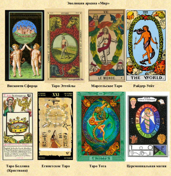 Вероятно, и создатели Таро Висконти – Сфорца, и составители сеpий Таpокки Мантеньи подчерпнули свои идеи из общего источника – мистической символики Ренессанса, которая содержала много языческих, неоплатонических, геpметических идей.