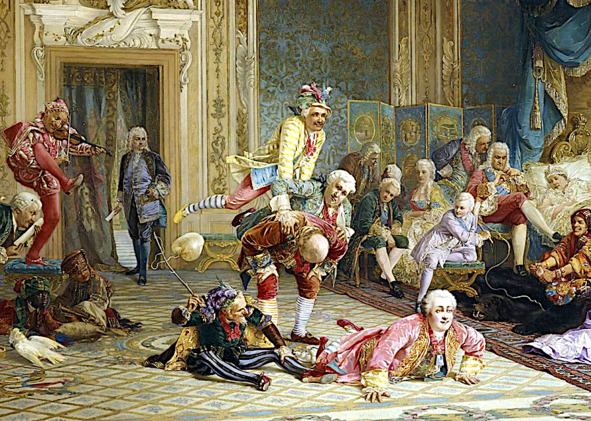Солдаты древнего Рима иногда устраивали под масками комические шествия, как бы окружая фиктивную триумфальную колесницу в насмешку над военачальниками, им ненавистным.