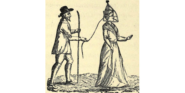 Средневековое изображение женщины в маске позора.