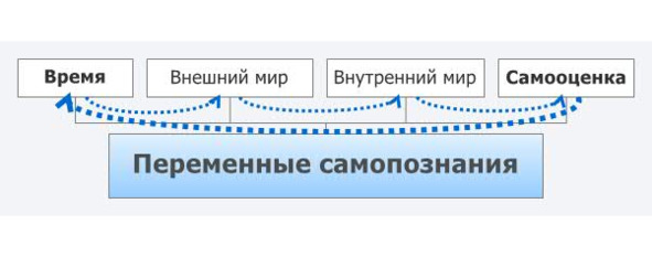 В этом смысле самопознание – познание самого себя и осмысление своего места в окружающем мире, – начинается в младенчестве и продолжается всю жизнь, постоянно видоизменяясь под влиянием времени. Время течёт – окружающий мир меняется. Меняется окружающий мир – и меняется внутренний мир человека. Как только меняется внутренний мир – требуется заново переосмысливать своё место в окружающем мире.
