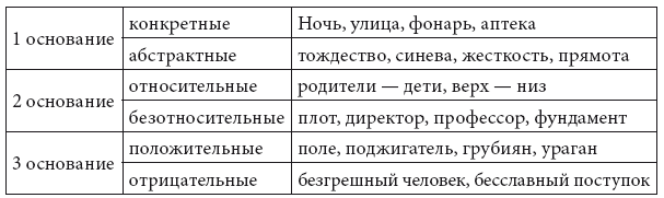 2) относительные и безотносительные: относительные – отражают предметы, существование которых предполагает существование других предметов («начальник – подчиненный», «отец – сын», «учитель – ученик»); безотносительные такой связи не предполагают (означают предметы, не связанные непременно с другими – «дом», «слово», «Родина»);