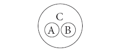 Подчиненные понятия (включение, соотношение рода и вида) – объем одного понятия целиком включается в объем другого, но не исчерпывает его (рис. 3). Понятие меньшего объема составляет часть объема большего, не выходя за его пределы. Другими словами, это вид понятия с большим объемом, который по отношению к нему является родом («преступление» и «правонарушение», «студент» и «учащийся», «судья» и «юрист» и т. д.).