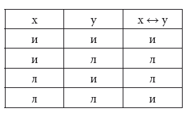Логическая схема данного суждения такова: «А <? В». Истинно оно тогда, когда обе его части либо истинны, либо ложны (эквивалентны) и ложно в остальных случаях, то есть когда одно из составляющих его простых суждений истинно, а другое – ложно.