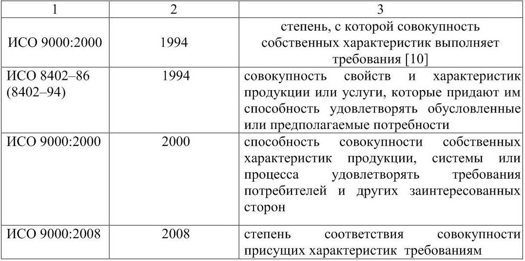 Таблица 1 – Сравнительный анализ понятия «качество»