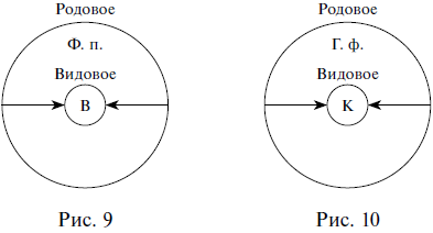 Если к содержанию понятия геометрическая фигура (Г. ф.) прибавить признак иметь равные стороны и прямые углы, то оно превратится в понятие квадрат (К), которое будет видовым по отношению к исходному родовому понятию геометрическая фигура (рис. 10).