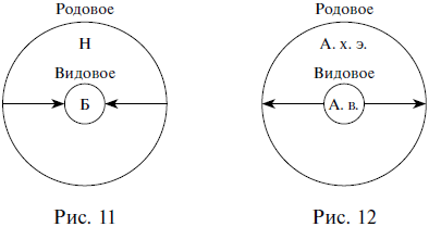 Если от содержания понятия атом водорода (А. в.) отбросить признак иметь один электрон, то оно превратится в понятие атом химического элемента (А. х. э.), которое будет родовым по отношению к исходному видовому понятию атом водорода (рис. 12).