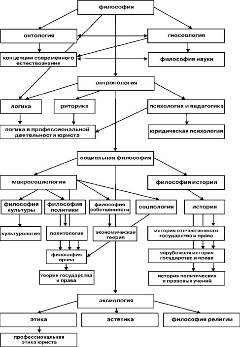 Далее, социальная философия через соответствующие философские конкретизации связывает воедино социологию, политологию, экономическую теорию, культурологию. На пересечении ряда дисциплин: социологии, политологии формируется теория государства и права и как наиболее общий ее уровень – философия права.