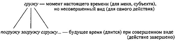 Ср. еще грузить — несовершенного вида (идея настоящего времени), но гружен — совершенного вида (ибо причастие прошедшего времени).