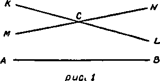Небезусловная очевидность постулата Евклида и отсутствие противоречий в системе теорем, доказываемых на основе постулата, противоречащего постулату о параллельных, даёт возможность поставить вопрос, каков будет результат, если вместо постулата Евклида в число оснований геометрии будет принят другой — тоже не безусловно очевидный — постулат. Согласно последнему, получившему название постулата Лобачевского, через данную точку С, лежащую вне данной прямой АВ, можно провести в одной с ней плоскости не одну единственную не пересекающуюся с прямой АВ прямую, как это утверждает постулат Евклида, а целый пучок прямых, заключающийся между двумя прямыми KL и MN, проходящими через данную точку (см. рис.1) и называемыми параллельными относительно АВ[20].