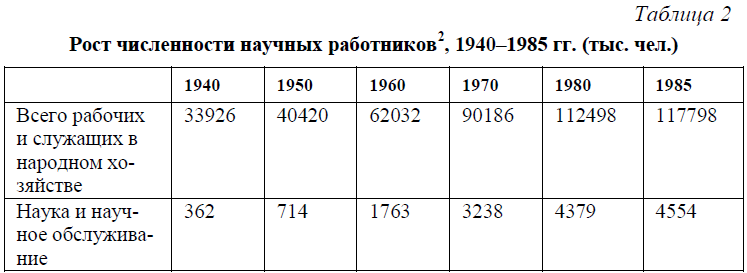 До 70-х гг. в СССР происходили структурные изменения в общественном разделении труда и формирование сферы науки как сферы, результаты которой не эпизодически, а систематически внедряются в производство. Факты свидетельствуют о том, что затраты на науку в 1970 г. по сравнению с 1940 г. выросли более чем в 30 раз, а численность работников, занятых в науке и научном обслуживании, — почти в 9 раз. В 70-е гг. процесс формирования заканчивается, и темпы роста науки стабилизируются. Если в СССР за 1950?1965 гг. ежегодный прирост затрат на науку составлял 12, 85%, то в последующие четыре года он был равен 5,45% [149]. Однако и в будущем темпы роста сферы науки по-прежнему должны превосходить темпы роста сферы материального производства.