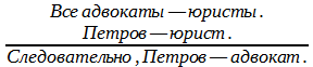 Такой вывод может оказаться ложным, так как умозаключение построено неправильно. Петров может быть юристом, но не быть адвокатом, а работать прокурором, судьей и т. д.