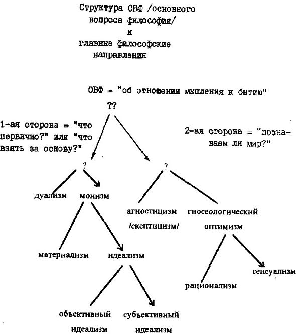 Сводную схему всех основных направлений в философии, связанных с решением ОВФ, можно представить в виде рис.1.