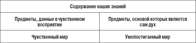 В соответствии с этим Гегель делит сознание на теоретическое и практическое. Теоретическое сознание – это пассивное взаимоотношение Я с предметом («в этом случае имеющиеся во мне определенные представления проявляются оттого, что непосредственно наличные предметы производят на меня какое-то впечатление»), т. е. всегда его содержанием является некоторое уже данное, наличное содержание (чувственный мир) или сущее как таковое (умопостигаемый мир).