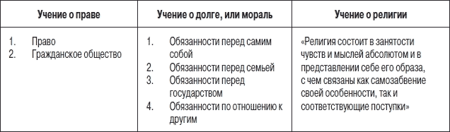 Заканчивается курс философии в младших классах рассуждением об обязанностях. Поскольку человек «имеет существенное определение быть отдельным человеком», то он имеет обязанности перед собой; поскольку он принадлежит некоторому естественному целому – семье, то он имеет обязанности перед семьей; являясь членом государства, он имеет обязанности перед государством, а находясь в отношении с другими людьми, он имеет обязанности перед людьми вообще.