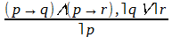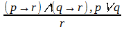Если обвиняемый виновен в заведомо незаконном задержании (р), то он подлежит уголовной ответственности за преступление против правосудия (r); если он виновен в заведомо незаконном заключении под стражу (q), то он также подлежит уголовной ответственности за преступление против правосудия (r).
