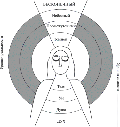 Рис. 4.1. Великое гнездо бытия. Адаптировано с разрешения правообладателя из книги Хьюстона Смита «Забытая истина: общее видение религий мира» (Smith H. Forgotten truth: the common vision of the world’s religions. – San Francisco: Flarper San Francisco, 1992, p. 62)