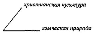 Язычество как воплощение веры в Природу столкнулось с христианством как новым культом — ростком совершенно новой Культуры, в центре которой сам человек. С верой в то, что человек может совершенствоваться нравственно. Такая точка зрения отводила природе второе место, и «хрустальный сосуд, который мы называем Природой», теперь непостижим ни чувственно, ни нравственно — только интеллектуальным действием, которое влияет на природу разрушительно [Андреев 1991: 37, 40].