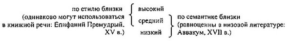 Для русских всегда было важно разграничить три уровня общения. Первый, освященно-сакральный, обращен к идеальному, к Богу; такою речью «пристойно говорить с Богом», как заметил Ломоносов. Второй, профессионально-деловой, обращен к другим членам общества и связан с волевой деятельностью человека, отличает особенности характера; им пристойно разговаривать и с государем. Третий, профанно-бытовой, обращен, конечно, к самому себе и к близким людям, которым не нужно ничего объяснять (опыт общий, и ситуация речи ясна), достаточно намекнуть эмоционально заряженным словом. Три уровня существования языка в речи согласованностью своих действий создают три разных стиля, в рамках которых и овеществляется идея языка. Интересно, что канонизация стилей как достойных форм выражения мысли идет сверху, начиная с высокого. В роли высокого стиля долго выступал заимствованный у южных славян старославянский, затем искусственный церковнославянский, а с XVII в. все архаические, но освященные традицией употребления формы родного языка. Этот стиль, наследие Древней Руси, в XV в. развивался параллельно со стилем средним, который стал вкладом Московской Руси в национальную сокровищницу языка. На исходе XVII в. бытовой — «подлый» — стиль тоже входит в обращение на правах письменного. Не только в народной литературе, но и в неистово-чувственном вяканье протопопа Аввакума он обретает черты «достойного» стиля.