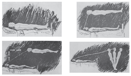Рис. 5. Кинематика образа феноменального тела во время опыта выхода из тела (ОВТ). Классический паттерн движения согласно книге С. Малдуна и Г. Каррингтона «Проекция астрального тела» (Лондон, Райдер и Ко, 1929).