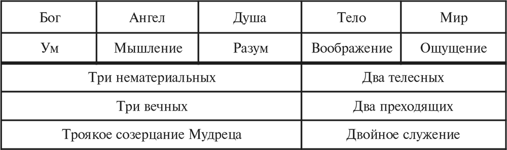 Таким образом, поскольку все нематериальное познание является Созерцанием, очевидно, что Созерцание трояко; ведь Созерцание есть вечное и бессмертное умозрение трех высших и главнейших сущностей мира – Бога, Ангела и Души. Очевидно также, что Душа Мудреца счастливо завершается числом своего начала, то есть троичности.