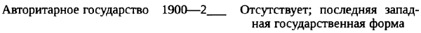 Последняя строка таблицы, иллюстрирующей биографию государственной идеи в западной культуре, такова: