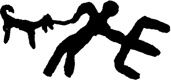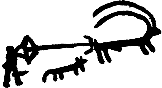 Рис. 7. Лучник, собака, горный козел и магический «выстрел» ритуальным топором в горного козла.