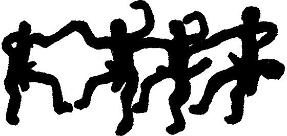 Рис. 9. Ритуальный танец четырех мужчин. Двое, расположенных слева — воины, справа — жрецы. Возможно относится к ритуалу инициации (посвящении юношей в ранг воинов). У всех у талии выглядывают рукоятки коротких скифских мечей-акинаков.