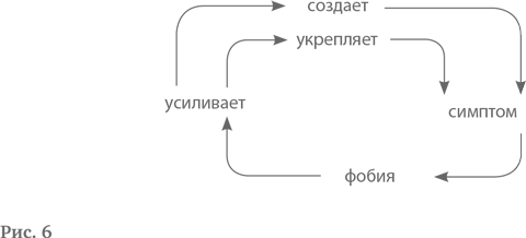 Однако любая подобная проблема должна одновременно решаться и с психической стороны; так как дело не в том, что, например, гипотиреоз может непосредственно вызывать агорафобию; гораздо вероятнее, что он привносит только готовность к страху, причем такая готовность к страху должна захватывать еще и страх ожидания, а механизмы такого страха нам, психотерапевтам, хорошо известны. Этот симптом, сам по себе безвредный и мимолетный, провоцирует у пациента фобическое опасение того, что симптом вернется. Такой страх ожидания в свою очередь усиливает симптом, и фобия пациента еще сильнее обостряется. Порочный круг замыкается, пациент оказывается запутан в нем как в коконе. В таких случаях справедливо перефразировать народную мудрость: если желание – мать мысли, то страх – отец болезненного процесса.