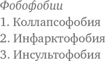 1. Столь распространенный страх пациента перед самим страхом; кстати, пациент опасается возможных последствий такого тревожного возбуждения для здоровья, боится, что у него может случиться коллапс, инфаркт или инсульт.