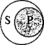 В общеутвердительных суждениях (А): «Все S есть Р» — субъект распределен, а предикат не распределен. Это видно на графической схеме (штриховкой отмечена степень их распределенности).